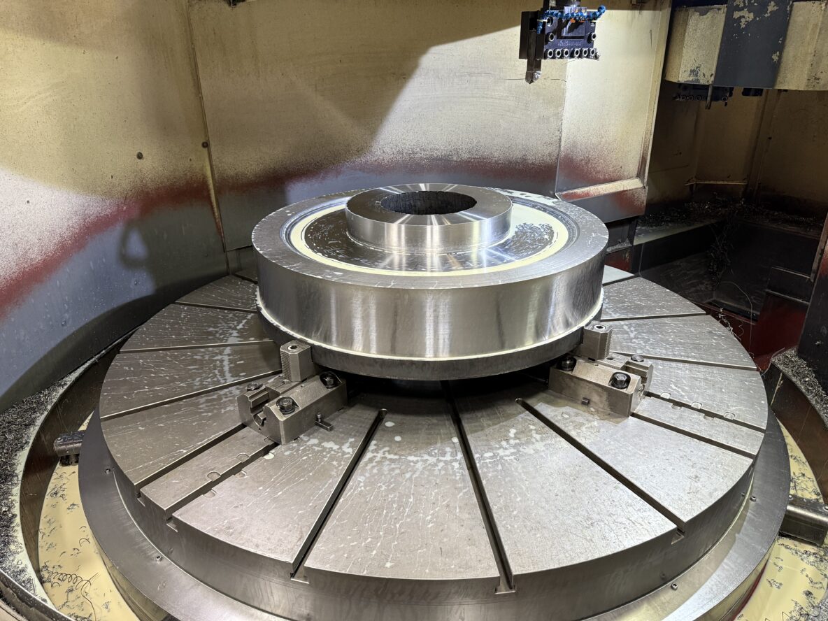 Precision Machining on CNC Vertical Turning Lathe Columbia Machine Works machined this component on our CNC vertical turning lathe